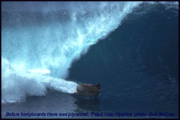 The 2004 edition of Matt Warshaw's Encyclopedia of Surfing describes bellyboarding as "all but forgotten" by the mid 1970s and the online version doesn't have an entry for bellyboards or paipo. Warshaw did, however, acknowledge that modern surfing techniques and surfboards were influenced by the bellyboard. Richard Kenvin's 2014 book, Surfcraft, well sums up the place of bellyboards in surfing history: "The paipo maintained a link to ancient boards and riding styles while demonstrating, in the midst of the longboard era, that incredible things were possible on thin, flexible boards with little flotation ... the paipo was a testament to the power of pure planing hydrodynamics". Rod Rodger's paipo forum, Tom Wegener's passion and promotion of the alaia and the World Bellyboard championships in the UK have rekindled an interest in these boards, which for some didn't need rekindling. On Oahu in particular, there remained individuals and small groups, mostly eschewing any publicity who continued to ride paipo boards. Bellyboards are being "rediscovered" and either being ridden in new ways or their potential explored through new technologies and designs. Compared with the history of stand-up boards little has been written about paipo/bellyboards and who made or rode them. Even where there are photos, the surfers are typically not identified.The links below will take you to some of the varied approaches to riding prone.